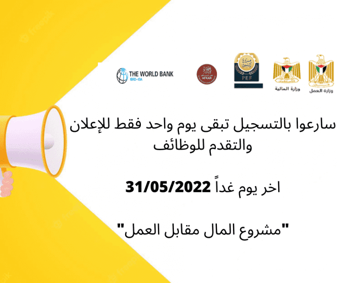 اليوم تنتهي مرحلة التسجيل الثانية لمشروع المال مقابل العمل