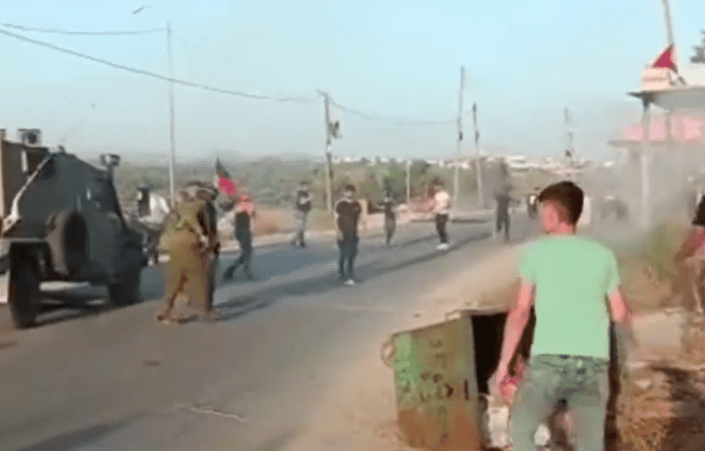 وأفادت مصادر محلية، بأن مستوطنين تجمهروا على مدخل القرية في محاولة لاقتحامها من أجل إزالة علم فلسطين عن أسطح عدد من منازل المواطنين، إلا أن الأهالي تصدوا لهم، ما أدى لاندلاع مواجهات مع قوات الاحتلال الإسرائيلي التي حضرت للمكان لتوفير الحماية للمستوطنين.