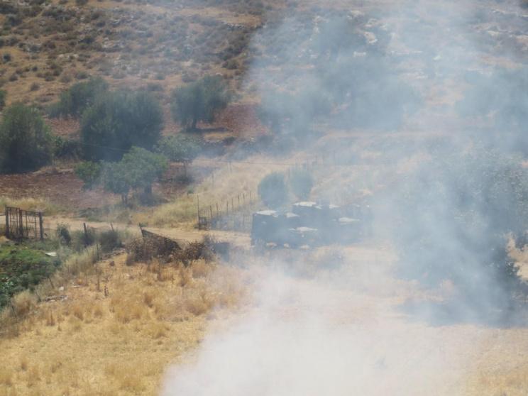 وأطلق جنود الاحتلال قنابل الغاز المسيل للدموع، والصوت ما أدى إلى إصابة عدد من المواطنين بالاختناق، كما أدت قنابل الغاز إلى اندلاع النيران في أراضي القرية.