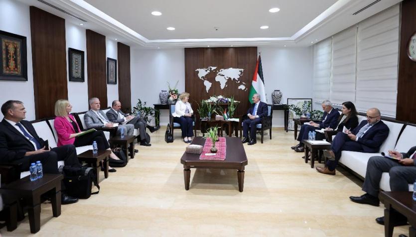 وبحث اشتية مع الوفد آخر المستجدات، والأوضاع التي تشهدها الأراضي الفلسطينية نتيجة تصعيد إسرائيل إجراءاتها وانتهاكاتها حق شعبنا ومقدساته.