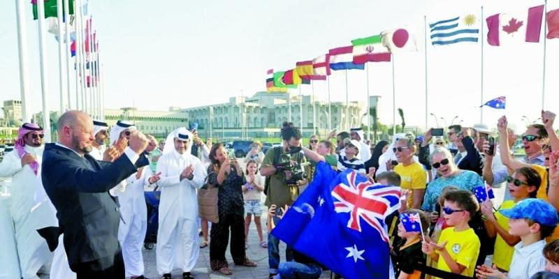 وتم رفع أعلام آخر 3 منتخبات متأهلة إلى مونديال قطر 2022 وهي ويلز واستراليا وكوستاريكا وسط أجواء احتفالية بعد اكتمال عقد المنتخبات المتأهلة.
