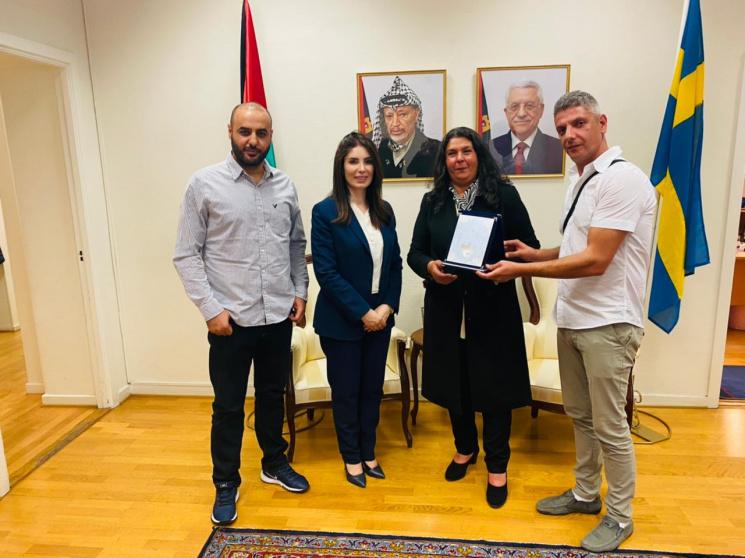 استقبلت سفيرة دولة فلسطين في مملكة السويد رولا محيسن، وفد هيئة شؤون الأسرى والمحررين المتواجد حالياً هناك، والذي يضم رئيس وحدة العلاقات الدولية رائد أبو الحمص ومدير الإعلام ثائر شريتح، للمشاركة في عدد من النشاطات والفعاليات.