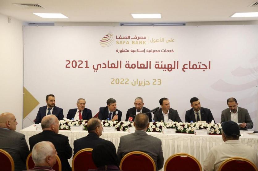 عقدت الهيئة العامة لمصرف الصفا الإسلامي يوم الخميس الموافق 23/6/2022 اجتماعها العادي للعام 2021، في مقر إدارته العامة في رام الله، برئاسة رئيس مجلس الإدارة السيد يزيد المفتي، وحضور كل من المدير العام للمصرف السيد نضال البرغوثي، والعضو التنفيذي لهيئة الرقابة الشرعية في المصرف د. أيمن البدارين، وممثلاً عن سلطة النقد الفلسطينية السيد مشهور أبو جيش، وممثل هيئة سوق رأس المال السيد سعود بني عودة، وممثل مسجل الشركات السيد بلال كتانة، وممثل شركة ديلويت أند توش السيد مُنذر البندك، علاوةً على عددٍ من أعضاء مجلس الإدارة والمساهمين. وافتتح الجلسة ممثل مراقب الشركات بعد اكتمال النصاب القانوني للاجتماع بنسبة 69% من رأس المال.