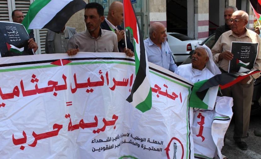 طالب ذوو الشهداء المحتجزة جثامينهم وذوو أسرى وأسرى محررون، مساء اليوم السبت، كافة المؤسسات الحقوقية والإنسانية بالتدخل والضغط على سلطات الاحتلال الإسرائيلي لتسليم جثامين أبنائهم المحتجزة.