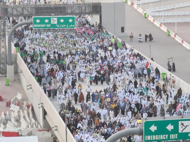 ويشهد المسجد الحرام وساحاته توافد حجاج البيت العتيق في اليوم الثاني من أيام التشريق من مشعر منى وذلك في حشود غفيرة لأداء طواف الوداع ليومي الثلاثاء والأربعاء لحجاج الداخل ويوم الخميس المقبل لحجاج الخارج البالغ عددهم مليون حاج .