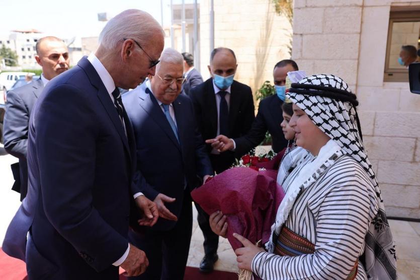 وأكد بايدن أن الشعب الفلسطيني يستحق أن يعيش حياة كريمة وفرصة للتنقل والسفر بحرية؛ ليشعروا بالأمان في مجتمعاتهم؛ وأن يكونوا قادرين على توفير الأمل لأطفالهم بأنهم سيتمتعون ذات يوم بنفس الحرية وتقرير المصير. وكرر أهمية تعزيز الأفق السياسي، مشيرا إلى أن الولايات المتحدة مستعدة للعمل لتحقيق هذا الهدف، وتعهد بأن تواصل الولايات المتحدة التعاون مع السلطة الفلسطينية في العديد من القضايا الحاسمة لتعزيز الأمن والازدهار للشعب الفلسطيني، لتشمل العمل في القضايا المالية، والتجارة، وتشجيع الاستثمار الأجنبي المباشر.