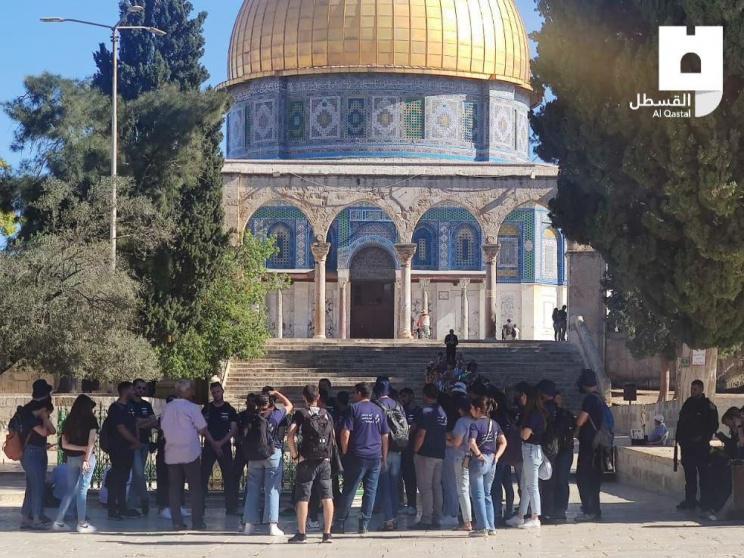 وأفادت دائرة الأوقاف الإسلامية في القدس، بأن عشرات المستوطنين اقتحموا الأقصى على شكل مجموعات متتالية، من جهة باب المغاربة، وأدوا طقوسا تلمودية ونفذوا جولات استفزازية في باحاته، واستمعوا لشروحات مزورة حول "هيكلهم".