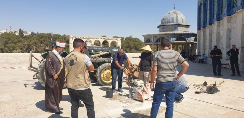 بالصور: أوقاف القدس تصلح تسريب في "خط المياه" الملاصق لقبة الصخرة