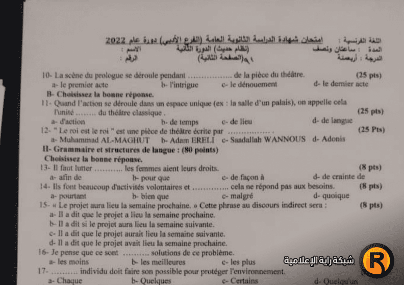 سوريا .. إجابات أسئلة امتحان اللغة الفرنسية للثانوية العامة البكالوريا 2022 الدورة الثانية
