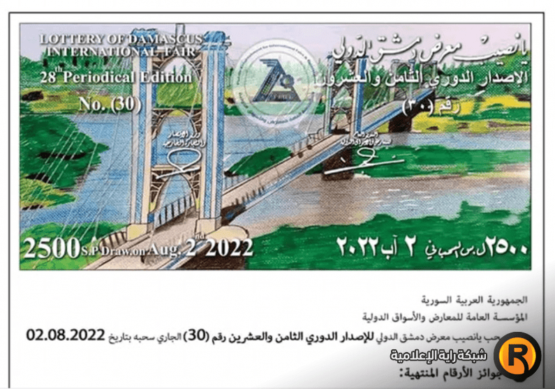 وقالت مؤسسة المعارض والأسواق الدولية عبر صفحتها الرسمية في موقع التواصل فيسبوك: "نتائح سحب يانصيب معرض دمشق الدولي للإصدار الدوري الثامن والعشرين رقم 30 الجاري سحبه بتاريخ 02 / 08 / 2022".