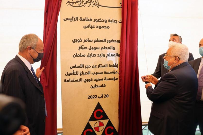 وأعرب الرئيس محمود عباس عن اعتزازه بالمشاركة في مراسم إزاحة الستار عن حجر الأساس لمشروعين خيريين، يحملان اسمي قامتين وطنيتين، لرجلين عملا بكل إخلاص وتفانٍ من أجل فلسطين أرضاً، وشعباً، وقضيةً، وهما مبنى مؤسسة حسيب الصباغ للتأهيل، ومبنى مؤسسة سعيد خوري للاستدامة.