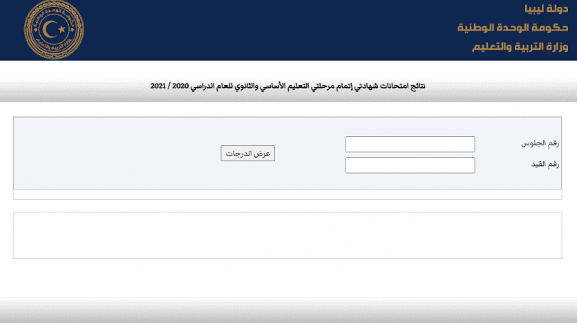 وعبر رابط نتائج شهادة التعليم الأساسي والثانوي 2022 في ليبيا يمكن للطلبة الاستعلام عن نتائجهم فور الإعلان الرسمي وذلك بإدخال رقم الجلوس والقيد لكل طالب ثم الضغط على خيار عرض الدرجات.