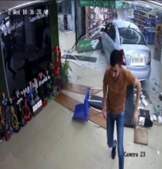 نجا شاب أمس الأربعاء من حادث سير إثر اقتحام سيارة لإحدى المحال التجارية داخل مول في نابلس.