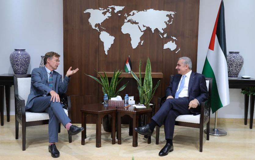 بحث رئيس الوزراء محمد اشتية، اليوم الخميس في مكتبه برام الله، مع ممثل الاتحاد الأوروبي لدى دولة فلسطين سفين كون فون بورغسدورف، آخر التطورات والمستجدات السياسية.