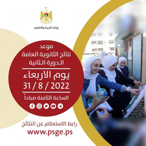 ونضع لكم متابعينا رابط نتائج الثانوية العامة توجيهي فلسطين "الدورة الثانية" 2022 في الضفة الغربية وقطاع غزة والقدس للاستعلام عن النتائج عبر إدخال رقم الجلوس ثم انتظار النتيجة الرسمية عبر الموقع.