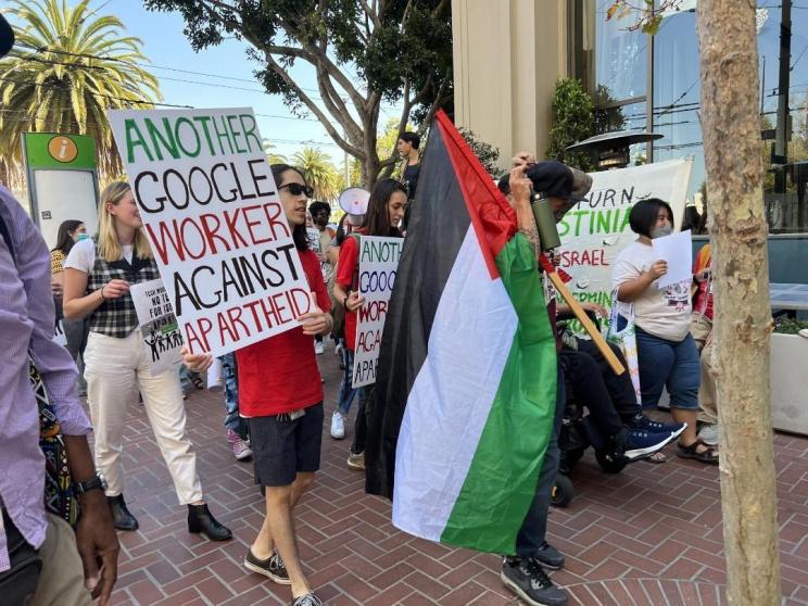 نظم العشرات من موظفي شركتي "غوغل" و"امازون" وعاملين اميركيين في مجال التكنولوجيا بالإضافة إلى أفراد من المجتمعات المحلية، وقفات أمام مكاتب الشركتين، احتجاجا على تزويد الشركتين تكنولوجيا التجسس لإسرائيل.