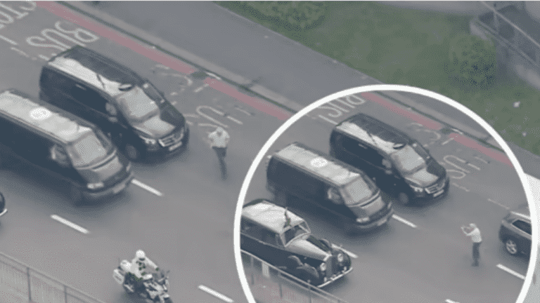 WATCH: A man ran out in front of cars on A40 to take a picture of King Charles III as the monarch made his way to RAF Northolt to fly to Edinburgh. #KingCharlesIII #Britain pic.twitter.com/hM5PLQAbsN
