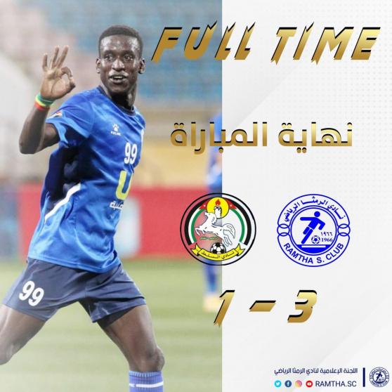 وقبل نهاية المباراة بنحو 5 دقائق، تمكن السنغالي الهادي سالم من تسجيل الهدف الثالث للرمثا.