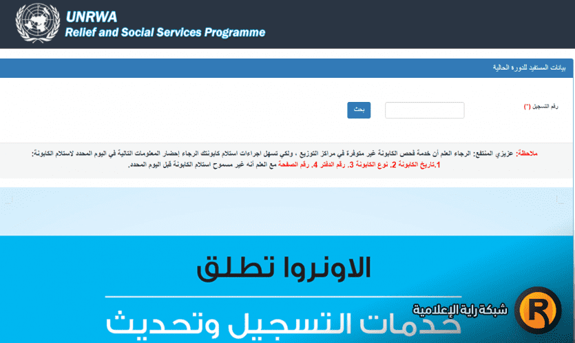 وتشير صفحة فحص كابونة الأونروا للمنتفع أنه يرجى العلم بأن خدمة فحص الكابونة غير متوفرة في مراكز التوزيع المنتشرة في محافظات قطاع غزة، ولكي يتم تسهيل إجراءات استلام الكابونة الرجاء إحضار المعلومات المطلوبة.