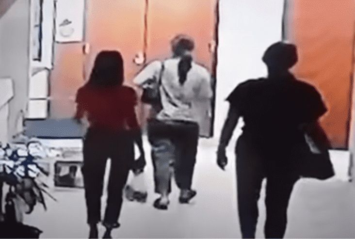 وفي الفيديو، تظهر 3 نساء تايلانديات يسرن في ممر داخل أحد المباني، ثم تقترب إحداهن من عربة صغيرة وفجأة ينقض ثعبان ضخم عليها، ويغرس أنيابه بقوة في قدمها.