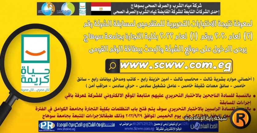 نتيجة مسابقة شركة المياه بسوهاج: اضغط هنا