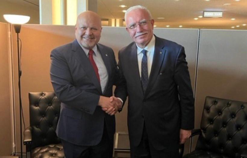 وحضر الاجتماع: مساعد وزير الخارجية للعلاقات المتعددة الاطراف السفير عمار حجازي، ومساعد الوزير للامم المتحدة ومنظماتها المتخصصة السفير عمر عوض الله، والمنسق السياسي في بعثة دولة فلسطين لدى الامم المتحدة السفير ماجد بامية، والسكرتير ثالث عبير عبد الحق، ولورين صايج.