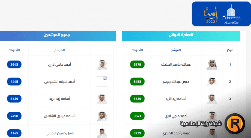 ونشر موقع مجلس الأمة على شبكة الانترنت أسماء المرشحين العشرة الأوائل الفائزين في نتائج انتخابات مجلس الامة الكويتي 2022 على رأسهم عبدالله جاسم المضف والذي حصل على أكثر من 5500 صوت من الإجمالي.