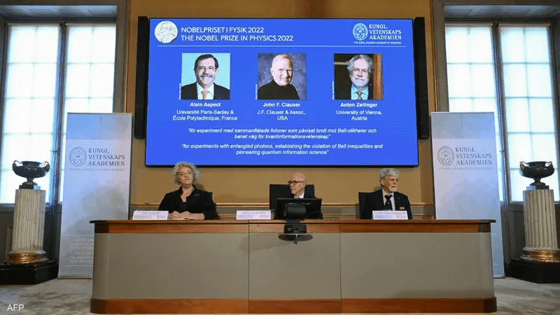 وأضافت اللجنة "أجرى آلان أسبيه وجون كلاوسر وأنتون زيلينغر تجارب رائدة باستخدام حالات كمومية متشابكة، حيث يتصرف جسيمان كوحدة واحدة حتى عند فصلهما".