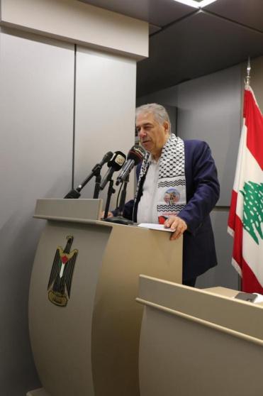 كلمة فلسطين القاها السفير دبور وجاء فيها: "قدامى المناضلين وليس المتقاعدبن لاننا في الثورة الفلسطينية ليس بيننا من يتقاعد وانما جميعنا مناضلون ثوار في هذه الثورة حتى تحقيق النصر، وما هي الا توصيفات ادارية ووظيفية فانتم جنود الاحتياط والاحتياط هو الداعم الاساسي لاستمرارية الثورة الفلسطينية على طريق ومسيرة النضال حتى تحقيق النصر.