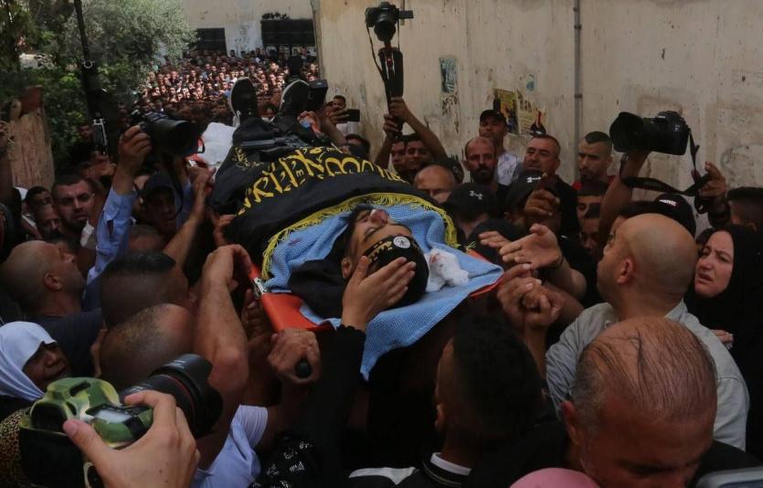 شاهد: جماهير غفيرة تشيع جثمان الشهيد متين ضبايا في جنين