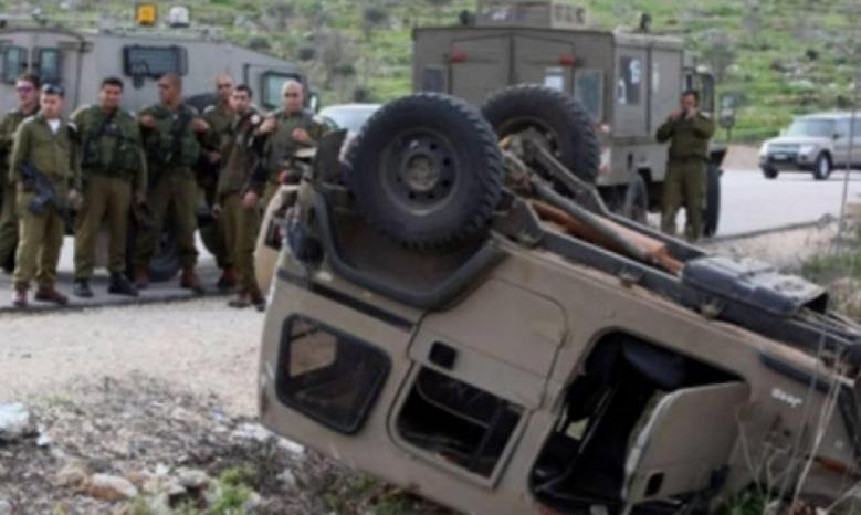إصابة 4 جنود "إسرائيليين" جراء انقلاب جيب عسكري قرب قلقيلية