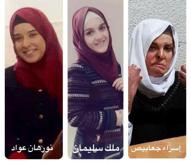 والأسيرة إسراء جعابيص من القدس وهي من أصعب الحالات الصحية في سجون الاحتلال، اُعتقلت عام 2015، بعد أن أطلق جنود الاحتلال النار على مركبتها بالقرب من أحد الحواجز العسكرية، مما أدى إلى انفجارها، واشتعال النيران فيها، وأُصيبت إسراء في حينه بحروق خطيرة في جسدها بما نسبته 60%، وفقدت أصابع يديها، وأصيبت بتشوهات في منطقة الوجه والظهر.