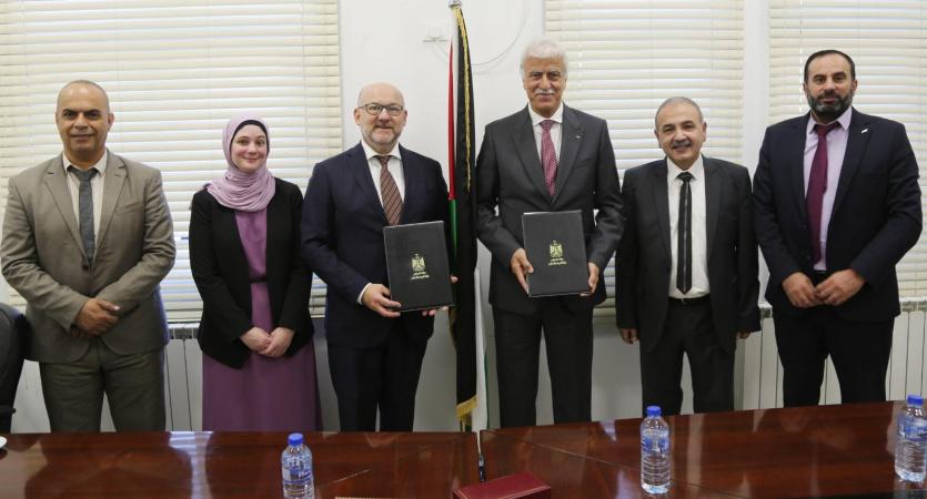 وقع وزير التربية والتعليم أ.د. مروان عورتاني، اليوم، مع مدير المجلس الثقافي البريطاني مارتن دلتري، اتفاقية تعاون؛ لتدريب معلمي اللغة الإنجليزية على مهارات المحادثة.
