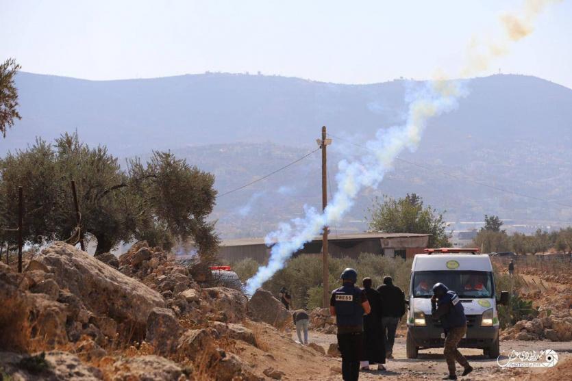 وفي قرية مادما بنابلس، اندلعت مواجهات بين المواطنين والمستوطنين واشتعلت النيران في أشجار الزيتون جراء إطلاق الاحتلال قنابل الغاز