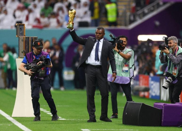 وقبل انطلاق حفل الافتتاح، رفع أسطورة منتخب فرنسا حامل لقب النسخة الماضية عام 2018، مارسيل ديساييه كأس العالم للجماهير قبل وضعه في مكانه المخصص بالملعب.