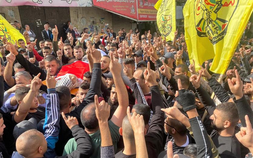الجماهير الفلسطينية تشيع جثمان الشهيد السعدي في مخيم جنين