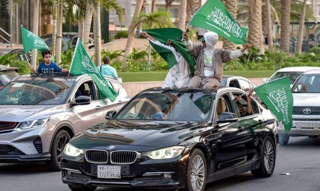 ورقص المشجعون السعوديون فرحين في حلقات في الشوارع، ولوّحوا بأعلام بلادهم الخضراء من نوافذ السيارات المسرعة، بعد فوز فريقهم على الأرجنتين.