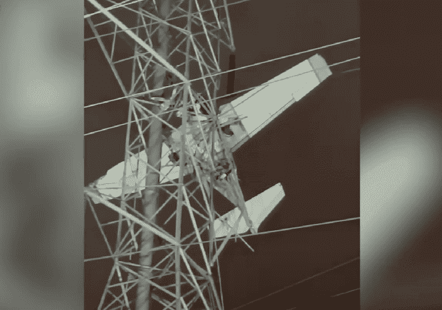 شاهد: لحظة إنقاذ طاقم طائرة عالقة في برج كهرباء