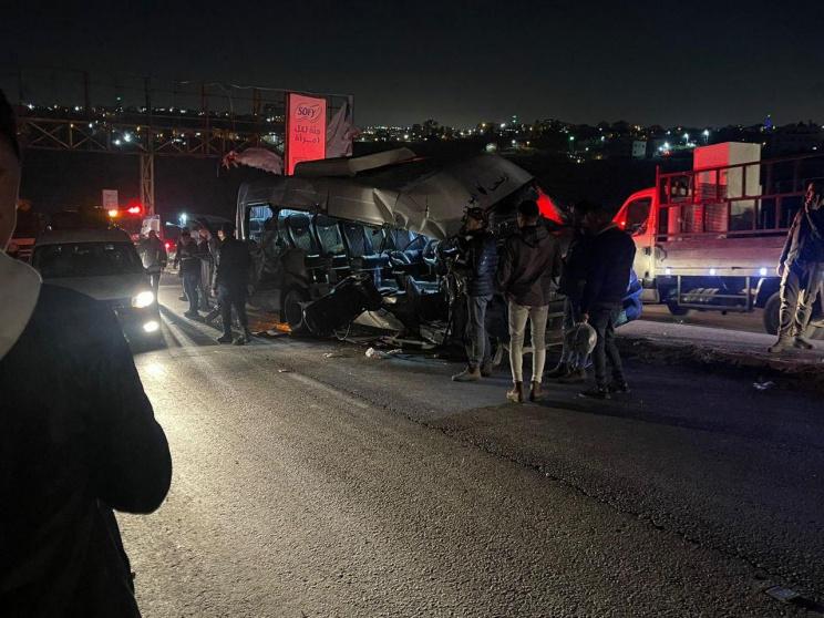أصيب 10 مواطنين في حادث سير على طريق العيزرية – أبوديس، بين حافلة نقل طلاب من أريحا وشاحنة.