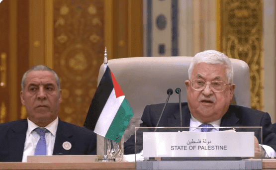وأكد الرئيس عباس في كلمته خلال القمة العربية الصينية الأولى المنعقدة في عاصمة المملكة العربية السعودية الرياض، أنه "وبالرغم من كل ذلك فإننا لن نتخلى عن الالتزام بالقانون الدولي، وإننا نتطلع وفي هذه الظروف الصعبة أن تواصلوا حشد الدعم الدولي لتنفيذ قرارات الشرعية الدولية ومبادرة السلام العربية، ودعم المساعي الفلسطينية الرامية للحصول على الاعتراف بدولة فلسطين، وعلى العضوية الكاملة في الأمم المتحدة، وعقد مؤتمر دولي للسلام، وتأمين الحماية الدولية لشعبنا الفلسطيني، وتطبيق قرارات الشرعية الدولية الخاصة بالقضية الفلسطينية، ومنها قرار مجلس الأمن 2334، وقرارا الجمعية العامة 181 و194 وهما القراران اللذان كانا شرطين لقبول إسرائيل كعضو في الأمم المتحدة ولم تنفذهما.
