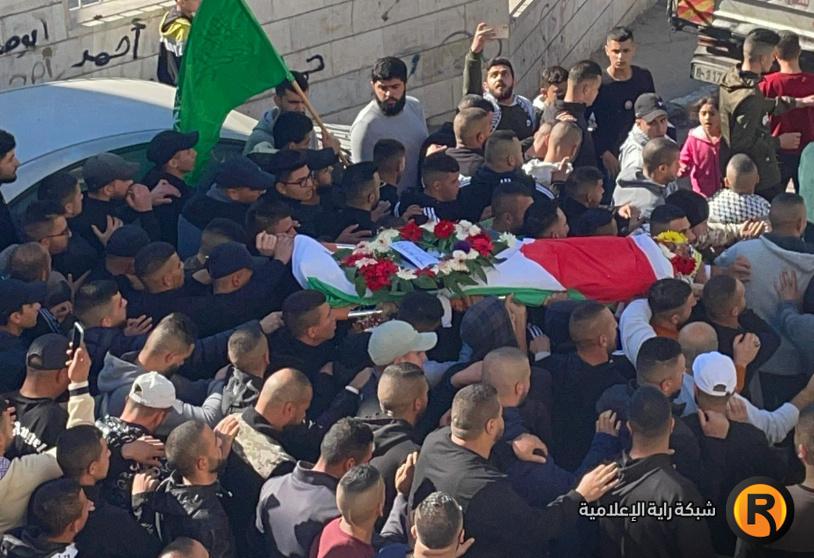 وانطلق موكب التشييع من أمام مجمع فلسطين الطبي بمدينة رام الله بجنازة مهيبة، شارك فيها مئات الشبان الذين ردّدوا هتافات للمقاومة وعرين الأسود ومطالبة بالثأر لدماء الشهداء. وحمل المشيعون أعلام فلسطين ورايات حركة حماس، كما هتفوا للشهداء الأبطال وأمهاتهم.