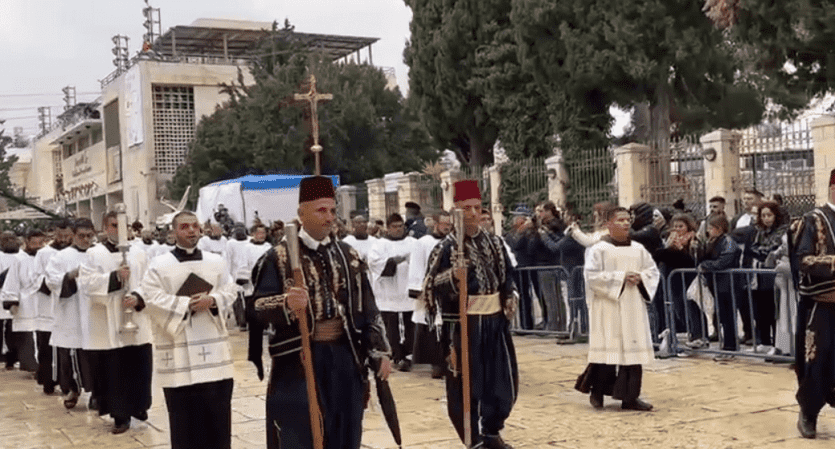 وكان الموكب البطريركي انطلق من ديوان البطريركية اللاتينية في القدس المحتلة، صوب مدينة بيت لحم وصولا إلى ساحة دير مار الياس، حيث استقبل هناك حسب الاستاتيسكو.