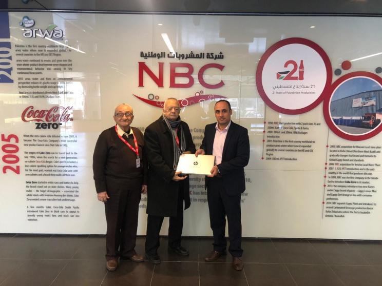 حيث تم تسليم الأجهزة للمدرسة في مقر شركة المشروبات الوطنية كوكاكولا/كابي، بحضور كل من علاء عيساوي منسق العلاقات العامة والدائرة الفنية بالشركة، ومدير عام مدارس ورياض الأقصى الإسلامية السيد عادل حلاق ونائب مجلس الأمناء السيد نبيل حمودة.