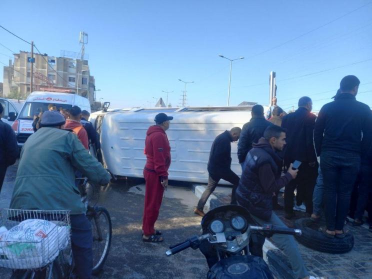 إصابات بانقلاب حافلة تقل موظفين وسط قطاع غزة
