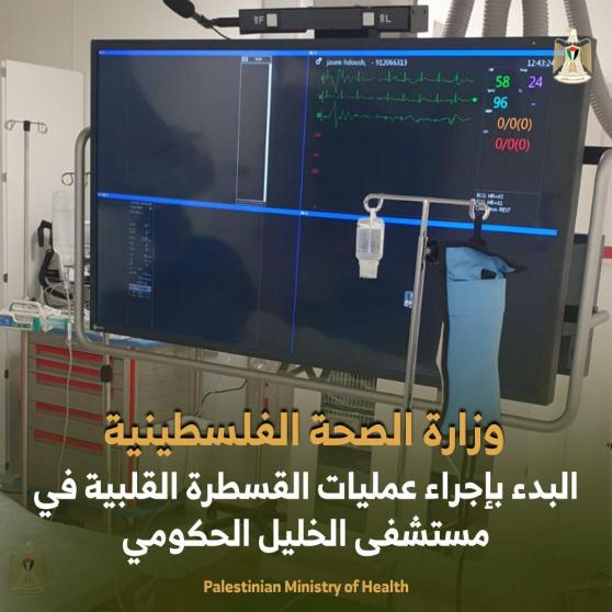 أعلنت وزارة الصحة الفلسطينية إدخال خدمة القسطرة القلبية إلى سلة الخدمات الطبية والصحية في مستشفى الخليل الحكومي.