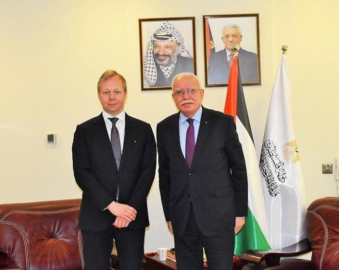 أطلع وزير الخارجية والمغتربين رياض المالكي، مبعوث الاتحاد الأوروبي لعملية السلام في الشرق الأوسط سفين كوبمانس، على آخر التطورات السياسية على الساحة الفلسطينية.