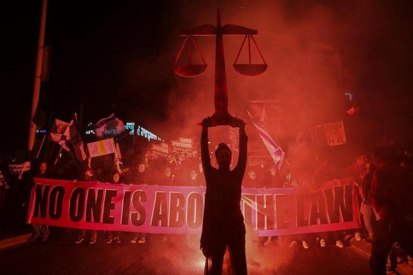 وتتواصل الاحتجاجات، للأسبوع السادس على التوالي، ضد الحكومة الإسرائيلية وخطة وزير القضاء ياريف ليفين، الرامية إلى إضعاف جهاز القضاء وتقويض المحكمة العليا.