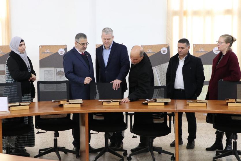 وقام الوفد خلال الزيارة بزيارة معرض ميثاق وجولة في دوائر المؤسسة، اطلعوا خلالها على جزء محفوظات المؤسسة من كنوز مخطوطة تعطي تصورًا كاملًا عن الحياة في فلسطين خلال العهد العثماني وفترة الانتداب البريطاني من كل جوانبها الاجتماعية والاقتصادية والسياسية والثقافية، كما اطلعوا على تجربة المؤسسة المتميزة في ترميم وصيانة المحفوظات.