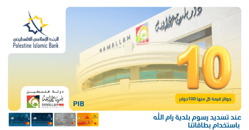 أعلن البنك الإسلامي الفلسطيني عن الفائزين في حملة تسديد رسوم بلدية رام الله عبر بطاقات البنك وعددهم 10 فائزين بلغت قيمة جائزة كل منهم 100 دولار.