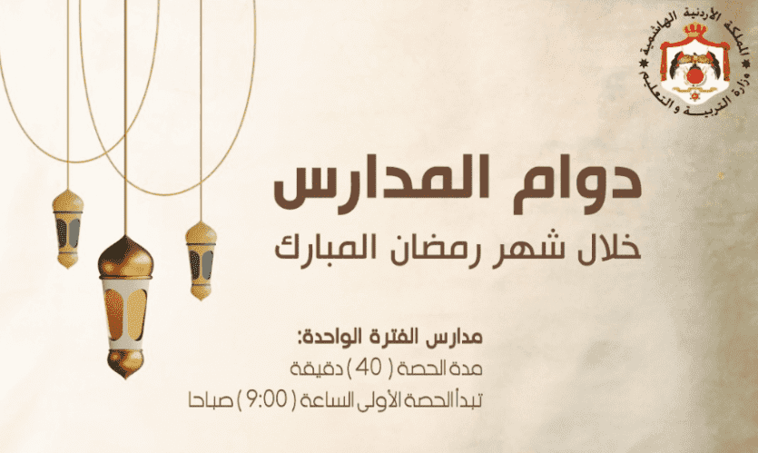 موعد دوام المدارس والموظفين في الأردن خلال شهر رمضان 2023
